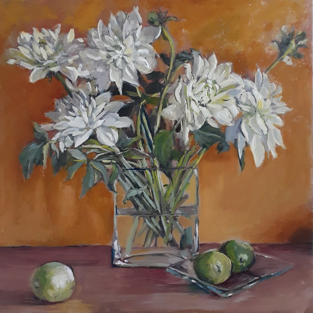 Caroline Simpson Camelia II 50x50cm Oil on Birch Panel SOLD