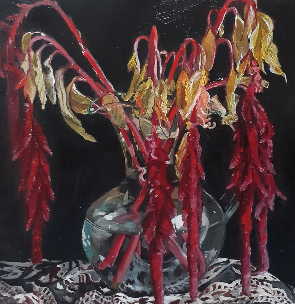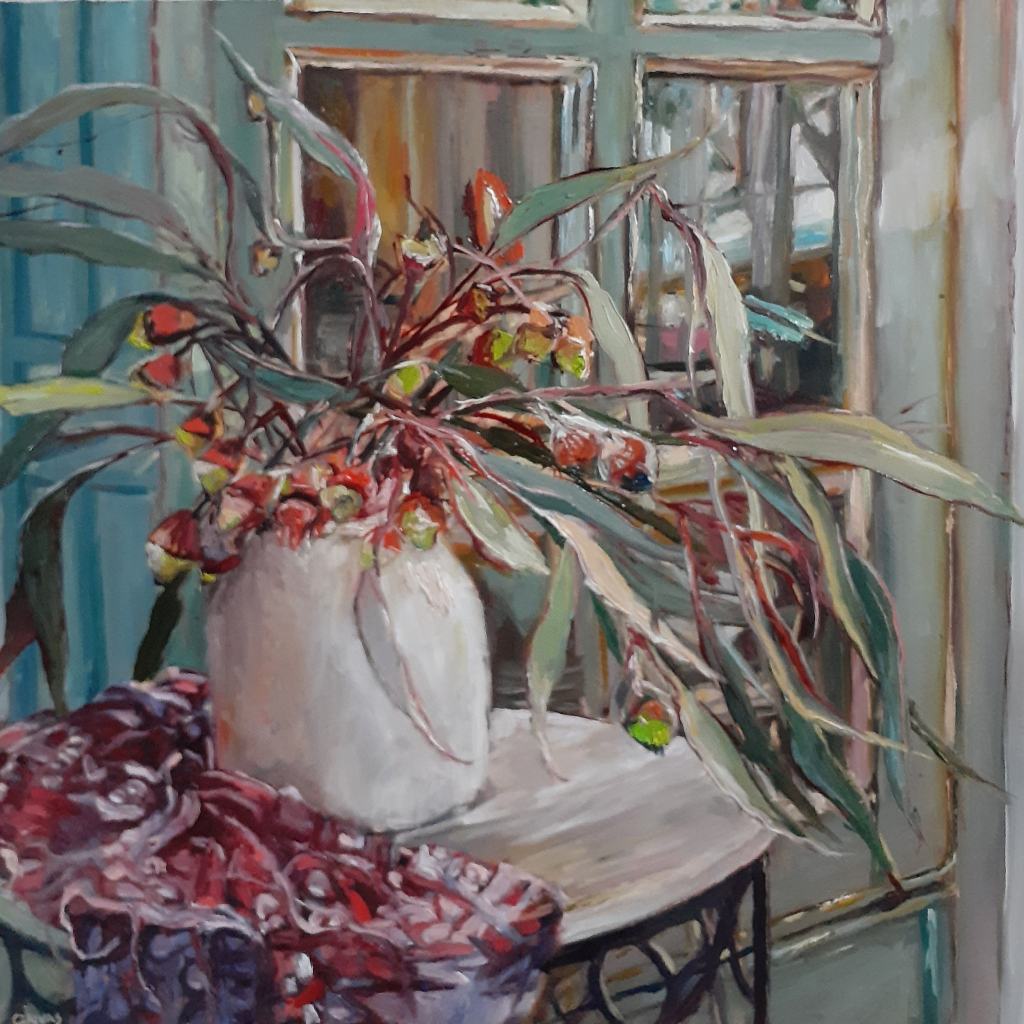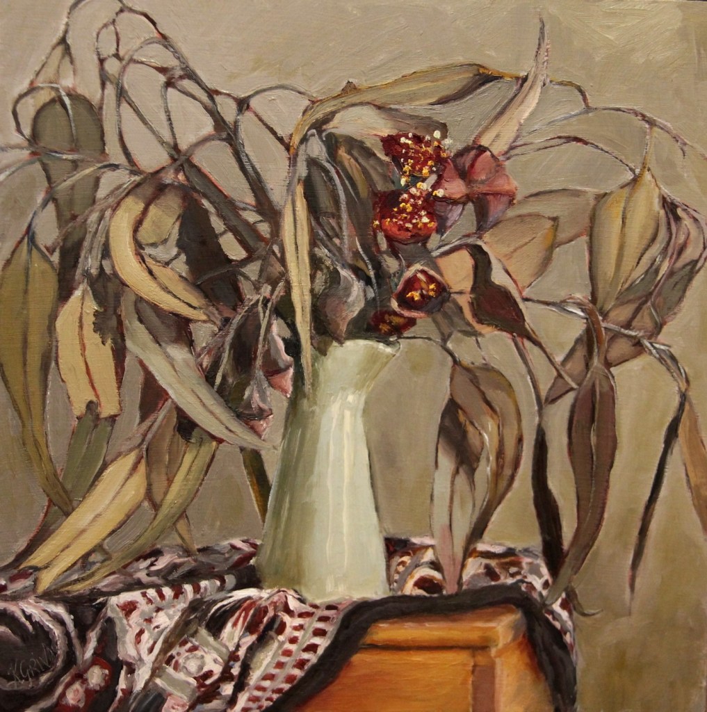 Gumleaves and Spanish Scarf 40x40cm Oil on Birch Panel SOLD