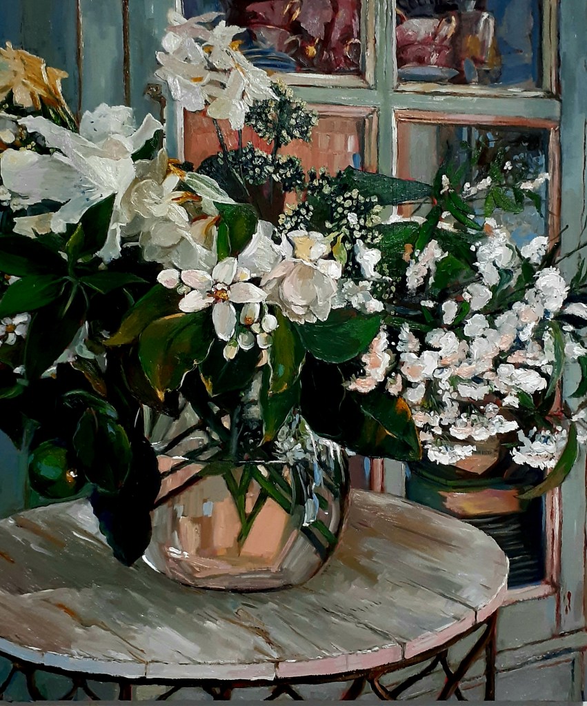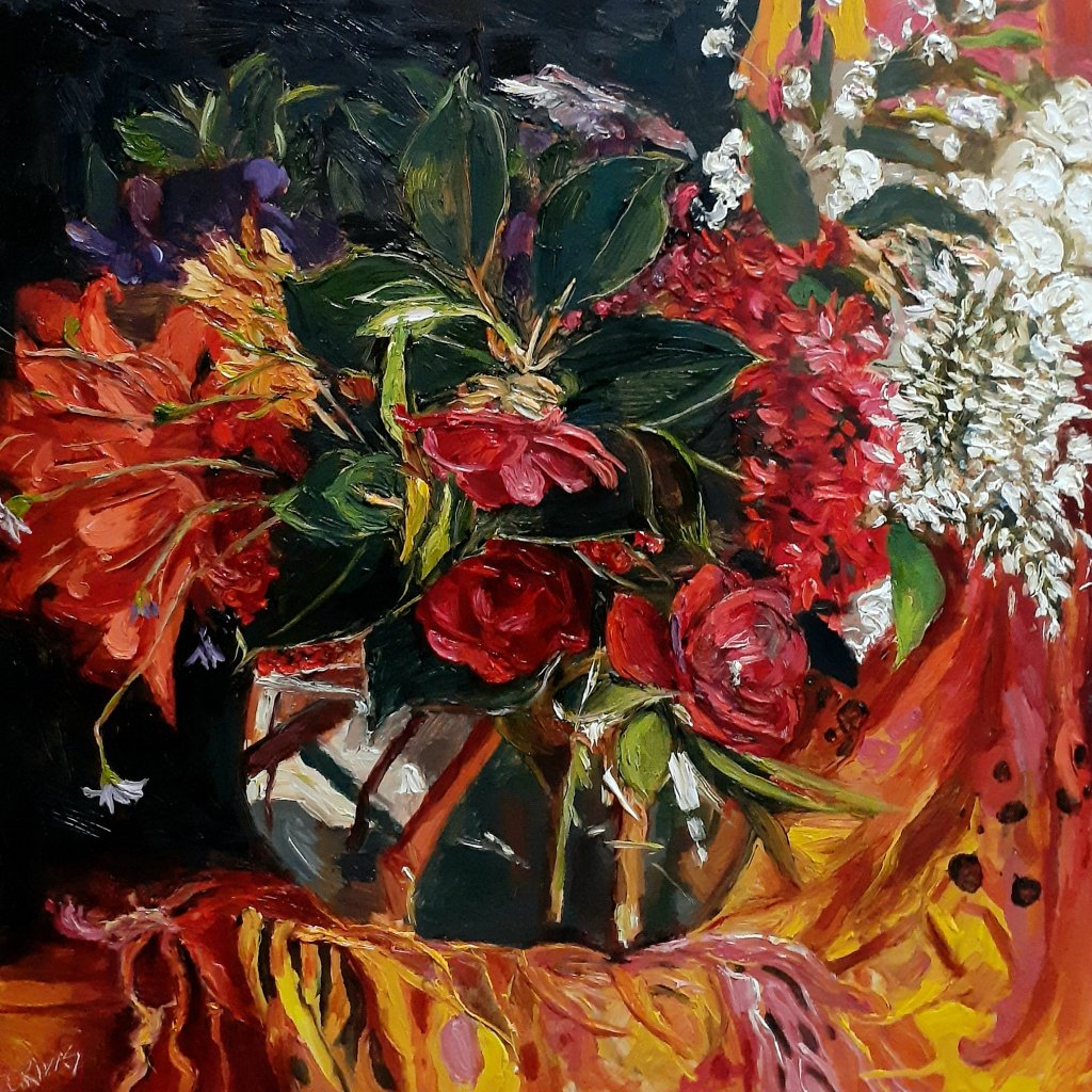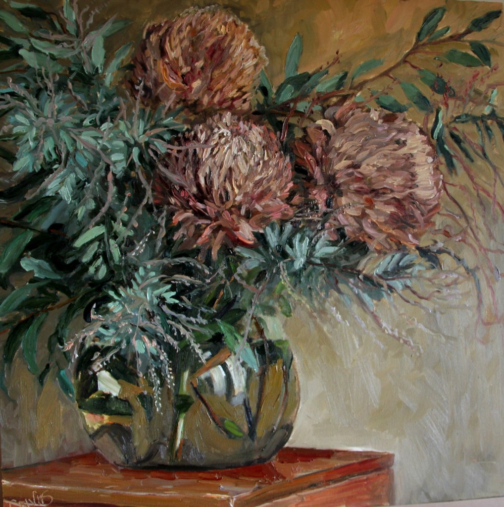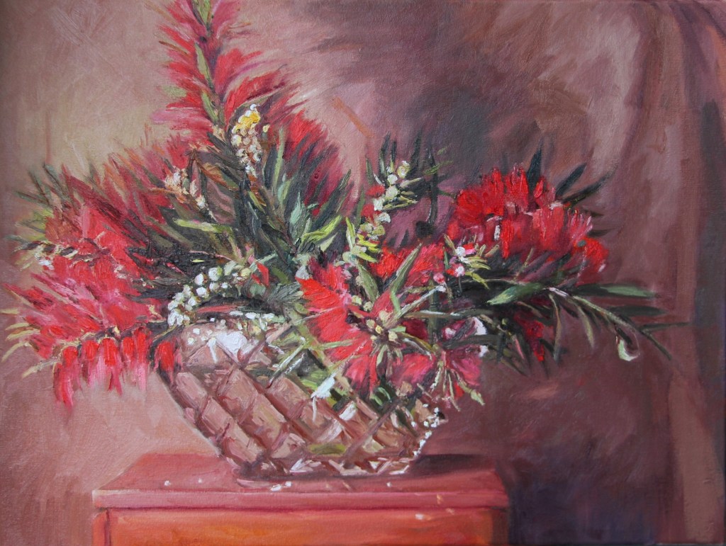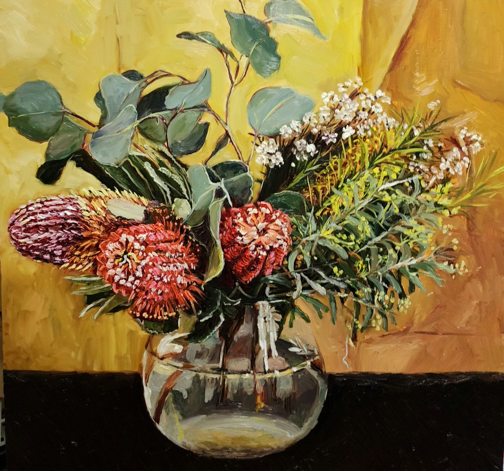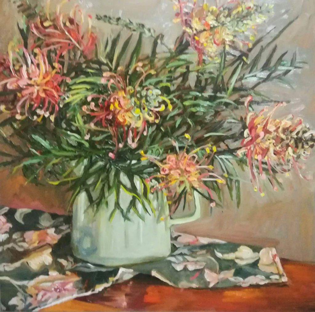 The Spanish Scarf & Gum Leaves 60x70cm Oil on Birch Panel SOLD