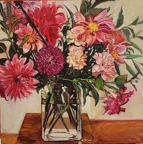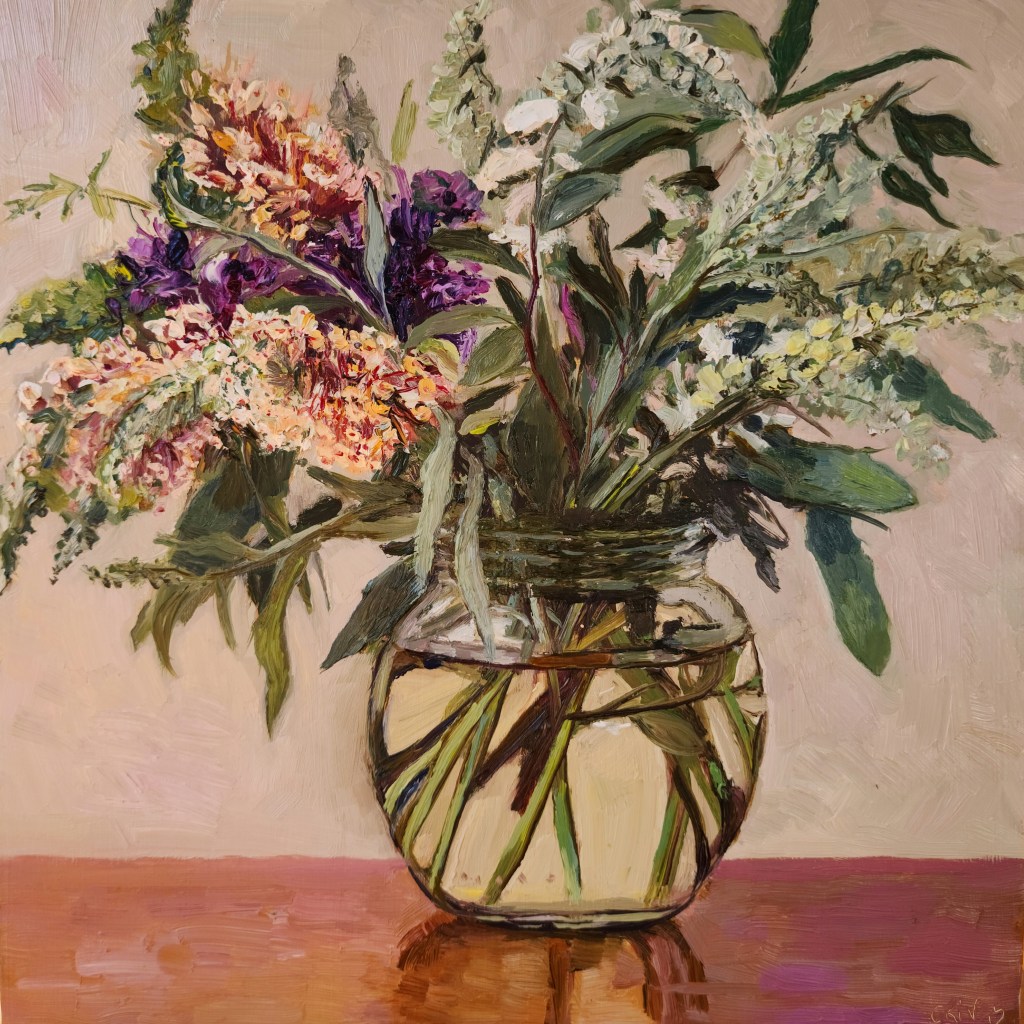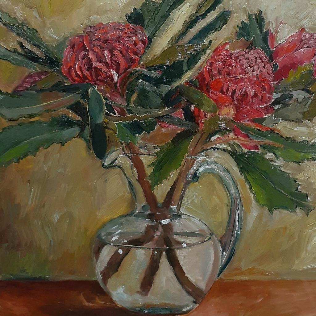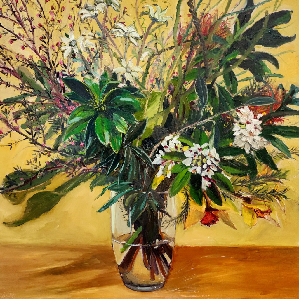 Spring Bunch 30x30cm Oil on Birch Panel Available at Wax Lyrical Bookshop Berry Dec 8-24 SOLD