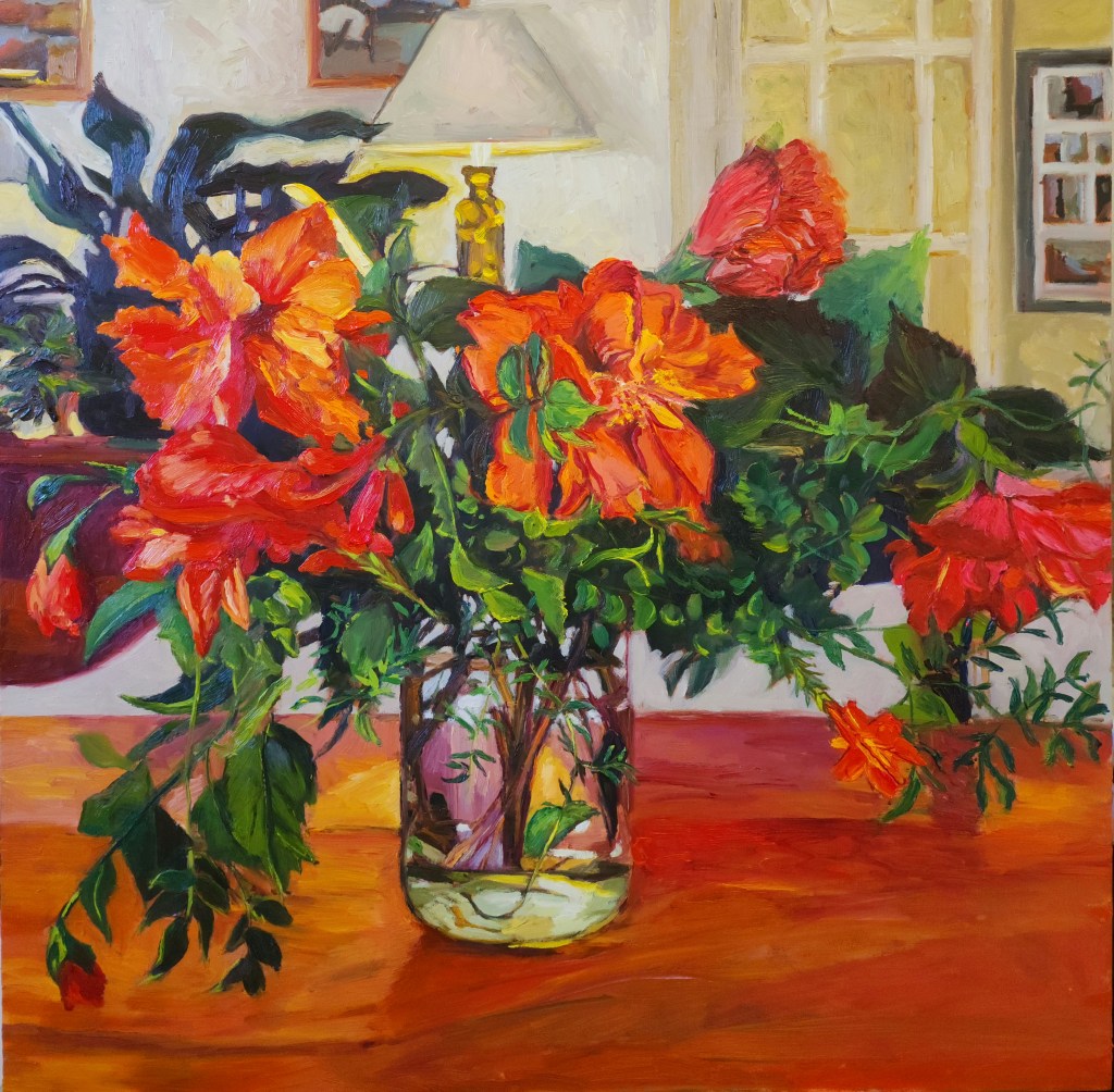 Hibiscus from the Garden (Tuross) 60x70cm Oil on Birch Panel SOLD