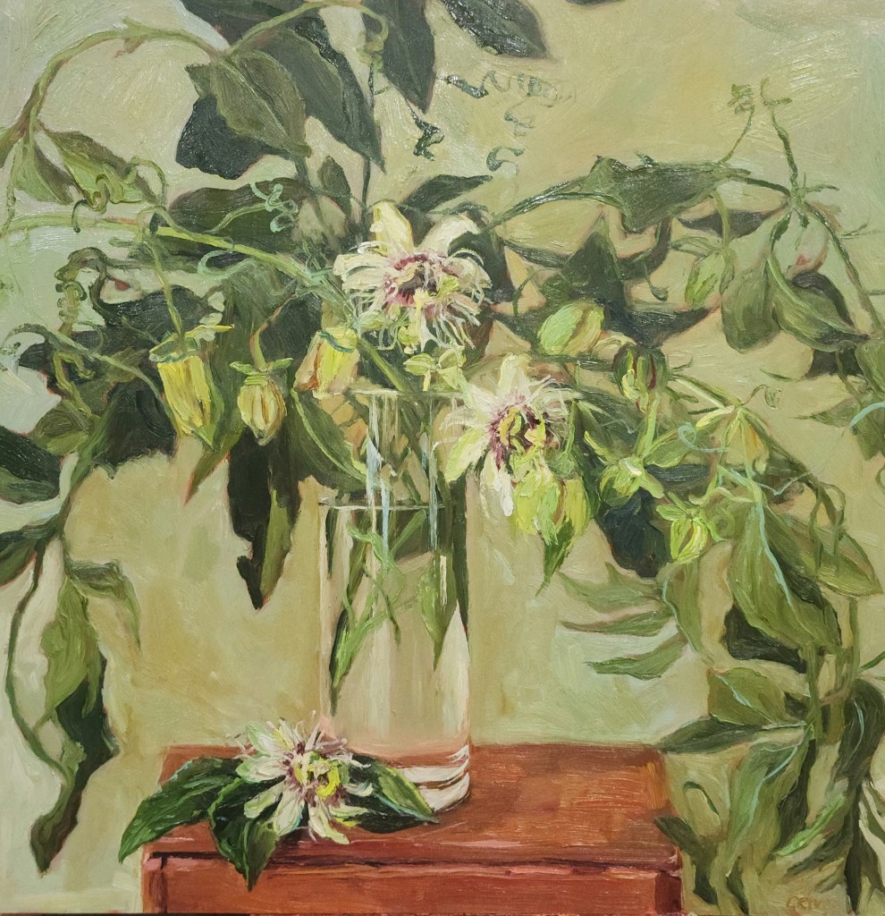 Passionflower Ramblings. Oil on Birch Panel 50 x 50cm SOLD